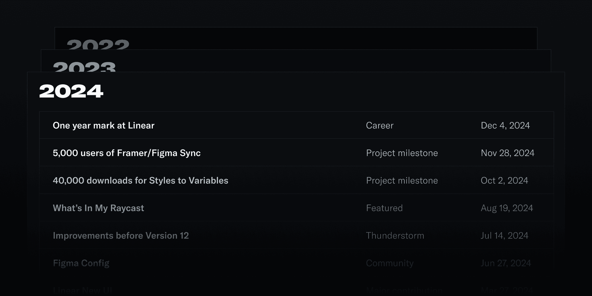 I’m really excited by the upcoming features coming to Linear, experiment more on Thunderstorm, and dream up new side projects with some friends. I’m also looking forward to meeting more incredible people and deepening the connections I’ve made.